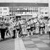 Menschenmenge mit Blaskapelle am Grenzbahnhof zwischen Lauenstein, einem Stadtteil der bayerischen Stadt Ludwigsstadt, und der thüringischen Gemeinde Probstzella. Die Grenzübergang Falkenstein wurde für den Schienenverkehr am 11. November 1989, für Fußgänger am 12. November 1989 und für den Straßenverkehr am 13. November 1989 geöffnet. Die Aufnahme entstand in der Nähe des Felsens Falkenstein, der dem Grenzübergang den Namen gibt.