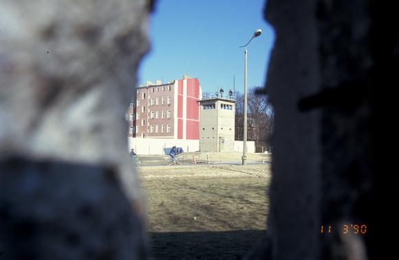 Blick auf einen Wachtturm im Grenzstreifen