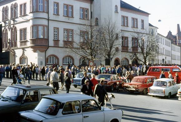 Outside the town hall in Hof, where "welcome money" was disbursed.