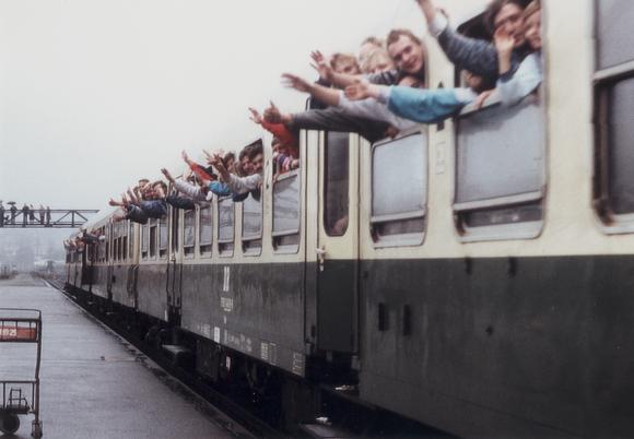 Mit Sonderzügen der Deutschen Reichsbahn trafen im Oktober 1989 tausende DDR-Flüchtlinge in Hof ein. Sie waren z.T. seit August in die Deutsche Botschaft in Prag geflüchtet, bis ihnen am 30. September die Ausreiseerlaubnis erteilt wurde.