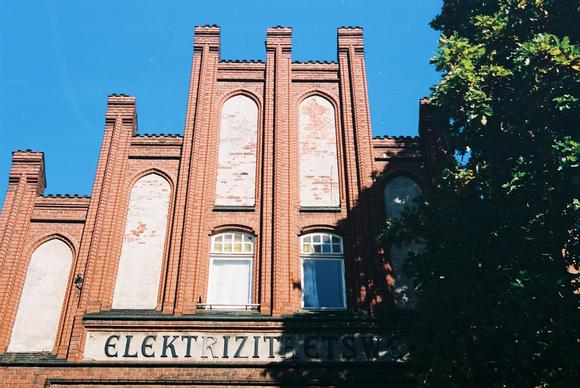 Giebel des zwischen 1901 und 1903 in neugotischer Industriearchitektur errichteten Elektrizitätswerks