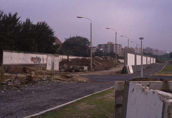Berlin Wall, border patrol road, cleared border strip, inner-Eastern Wall, litter, remains of the Wall