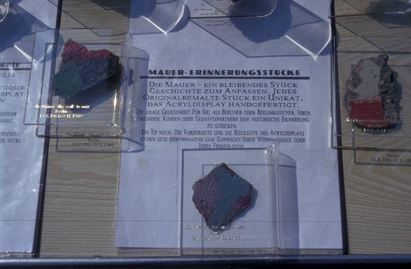 Mauer-Erinnerungsstücke / Die Mauer - ein bleibendes Stück / Geschichte zum anfassen. Jedes / originalbemalte Stück ein Unikat. / Das Acryldisplay handgefertigt. / Die ideale Gelegenheit für Sie, als Berliner oder Berlinbesucher, Ihren / Freunden, Kunden oder Geschäftspartnern eine historische Erinnerung / zu schicken. / Ein Tip noch: Die Vorderseite und die Rückseite des Acryldisplays / eignen sich hervorragend zum Einprägen Ihrer Werbeaussage oder / Ihres Firmenlogos
