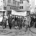 Protestors with banners at the Alexanderplatz demonstration, "the largest anti-government demonstration(s) in the history of the GDR" (retrieved and translated from