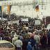 Demonstranten mit Transparenten bei der Alexanderplatz-Demonstration, der "größte[n] nicht staatlich gelenkte[n] Demonstration in der Geschichte der DDR" (