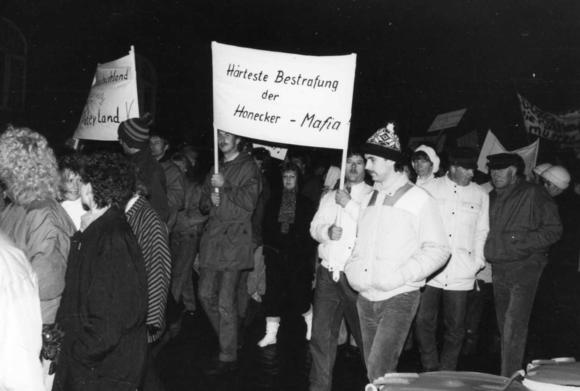 "The first and largest demonstration in Schönberg on 6.12.1989, attended by 2000 people."