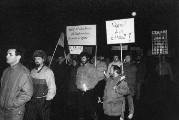 "The first and largest demonstration in Schönberg on 6.12.1989, 2,000 people attended."
