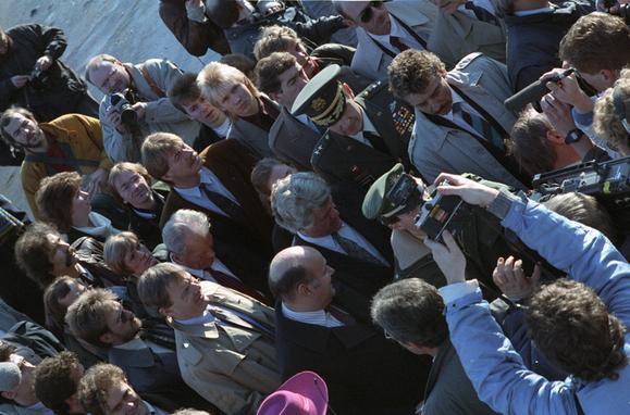 Politicians beside the Wall at Brandenburg Gate