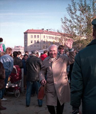 Winkender Mann am Grenzübergang Eberswalder Straße/Bernauer Straße