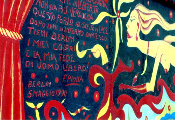 Detail des Mauerbildes "Hymne an das Glück" von Fulvio Pinna an der 1,3 km langen East Side Gallery in Berlin-Friedrichshain