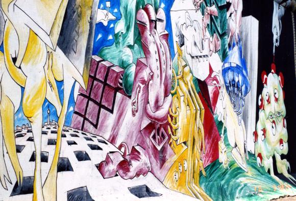 Detail of untitled Wall art by César Olhagaray at the 1.3 km long East Side Gallery in Berlin-Friedrichshain