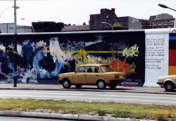 Wall art, "Paradise Out Of The Darkness" by Kikue Miyatake at the 1.3 km long East Side Gallery in Berlin-Friedrichshain