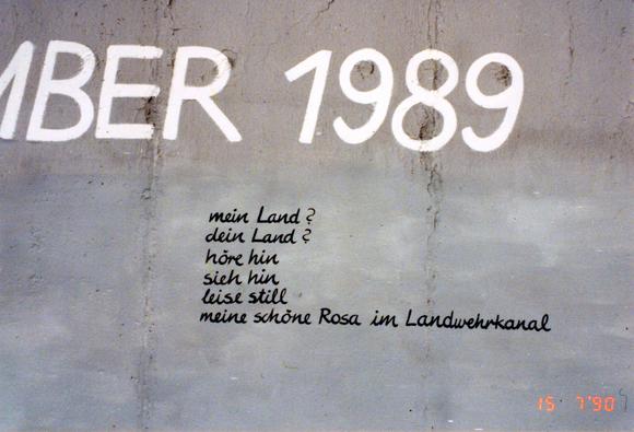 [Nove]mber 1989 / mein Land? / dein Land? / höre hin / sieh hin / leise still / meine schöne Rosa im Landwehrkanal