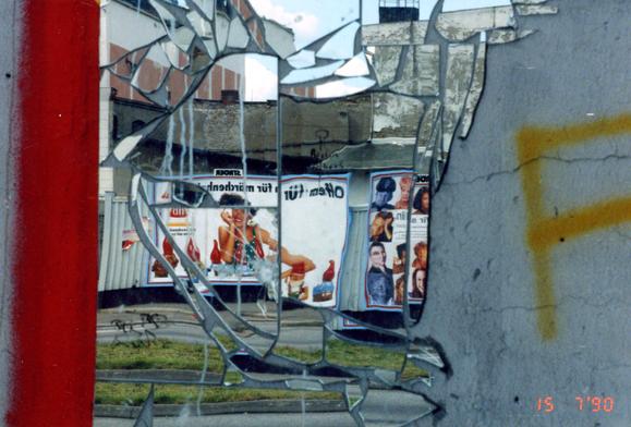 Mauerbild mit Spiegel an der 1,3 km langen East Side Gallery in Berlin-Friedrichshain