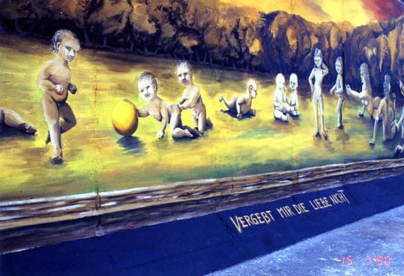 Mauerbild "Vergeßt mir die Liebe nicht" von Henry Schmidt an der 1,3 km langen East Side Gallery in Berlin-Friedrichshain