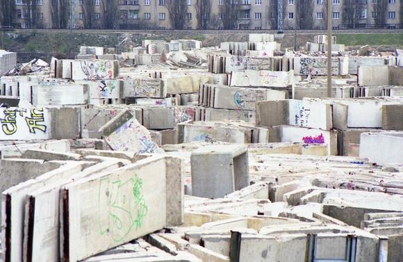 Gelände in Berlin-Pankow, wo im Zuge des Mauerabbaus von der Bundeswehr Mauersegmente gelagert und verkauft wurden