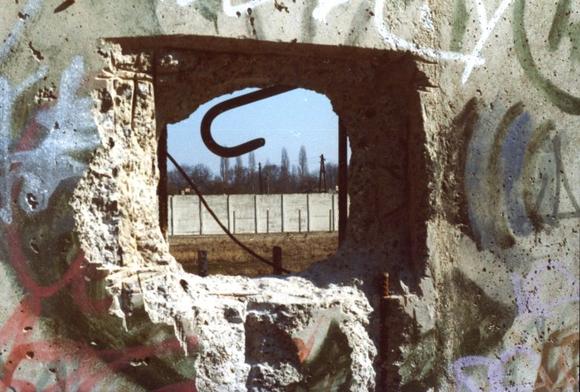 Berlin Wall, cleared border strip, steel reinforcement, Wall graffiti, Wall hole