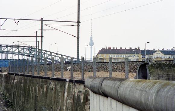 Berlin Wall (West), cleared border strip, remains of the Wall, track