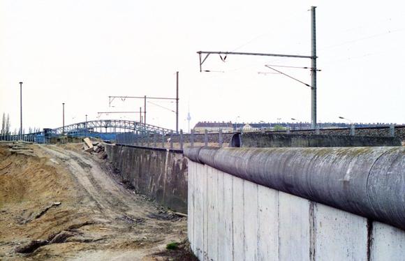 Berlin Wall (West), cleared border strip, remains of the Wall, track