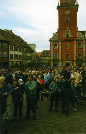 Mass rally at the central marketplace in Gotha, the City Hall on the right