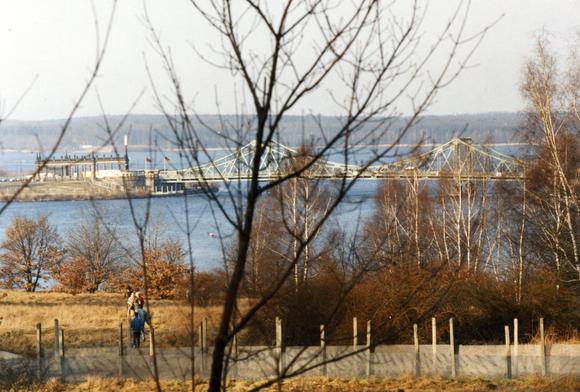 Blick auf den Grenzübergang, im Vordergrund die teilweise abgebaute Mauer