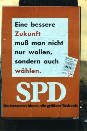 Eine bessere / Zukunft / muß man nicht / nur wollen, / sondern auch / wählen. / SPD / Die besseren Ideen - die größere Tatkraft