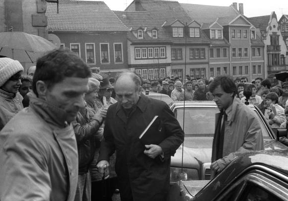 Dr. Otto Count Lambsdorff, then Federal Chairman of the FDP party at a pre-election event on Hauptmarkt in Gotha