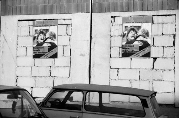 Wahlplakate in Halberstadt, aufgenommen am Tag der Volkskammerwahl 1990, der ersten demokratischen Wahl in der DDR