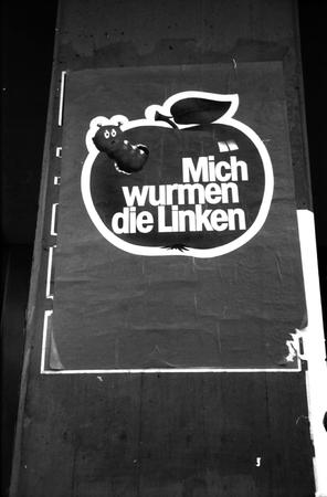 Plakat "Mich wurmen die Linken", aufgenommen am Tag der Volkskammerwahl 1990, der ersten demokratischen Wahl in der DDR