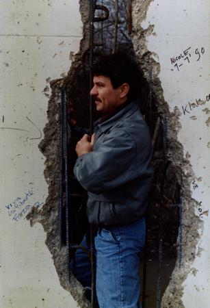 "Das Bild zeigt mich, wie ich in der Mauer stehe – quasi mit einem Bein im Westen und mit einem Bein im Osten."
