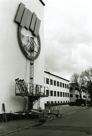 Removal of SED symbol from the then district and regional administration building of the SED (Socialist Unity Party of Germany); after reunification it was refurbished according to landmark protection criteria and since 2003 in use by Carl-Friedrich grammar school