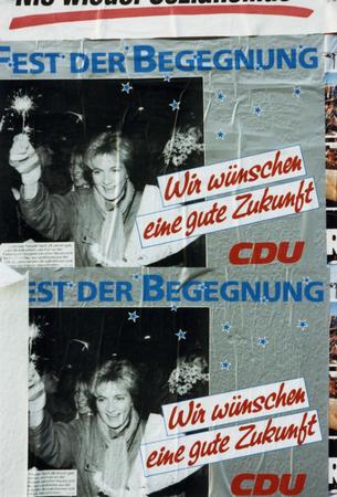 CDU-Wahlplakat mit Foto von einreisenden DDR-Bürgern