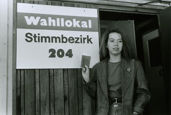 Outside a polling station in Frankfurt (Oder)