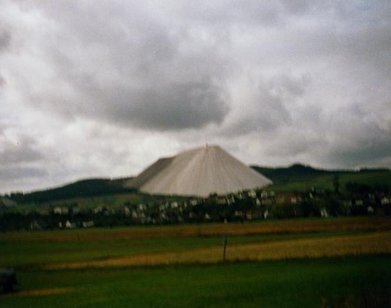 "The salt hill has always been a striking and clearly visible site from both the Thuringian and Hessian side. The potash salt field also denotes the area otherwise known as "land of the white hills". The hill is clearly visible from the A4 freeway, connecting East and West (Germany).