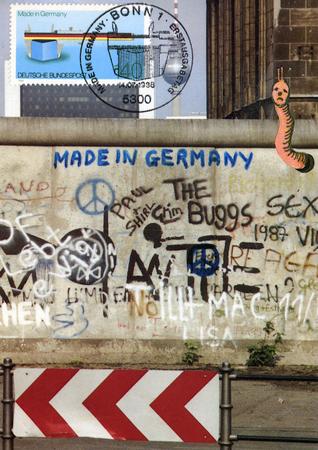 Berliner Mauer (West), Briefmarke, CND-Symbol, Fotografie, Handgemachtes Medium, Mauergraffiti, Mauerspruch, Nationalfarben, Postkarte, Tier