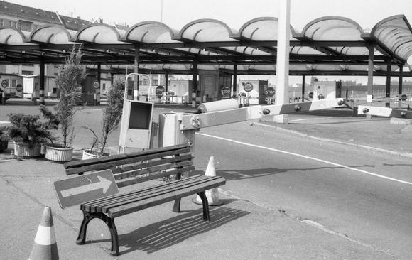 The border crossing at Bornholmer Strasse, one of seven street crossings between East and West Berlin (between the Soviet and French sectors) while the Wall was up and the first at which passport control was partially suspended on the night of 9th November 1989.