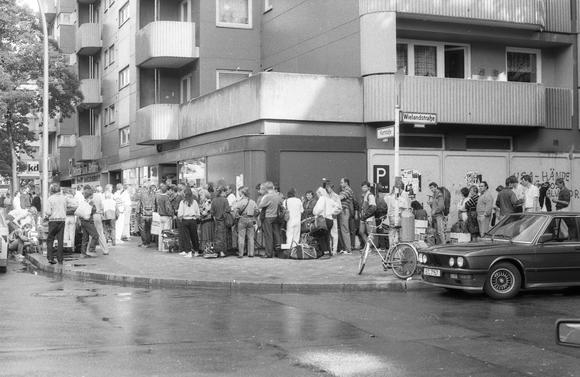 Warteschlange vor einer Filiale der Deutschen Bank Berlin