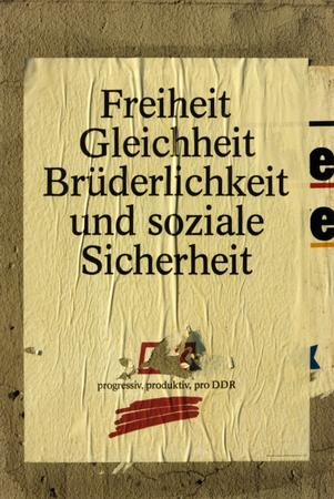 Freiheit / Gleichheit / Brüderlichkeit / und soziale / Sicherheit / progressiv, / produktiv, / pro DDR