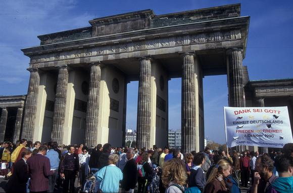 Bei der Feierlichkeiten zur Wiedervereinigung (LeMO, Stand 12. März 2010) am Brandenburger Tor