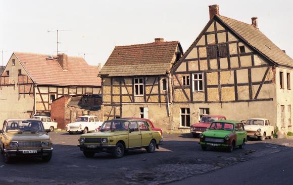 Carpark and half-timbered buildings on Usedom