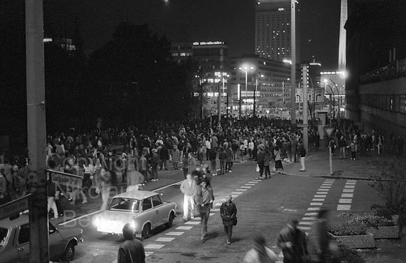 Demonstration outside ADN (state news agency) headquarters on the 40th anniversary of the GDR