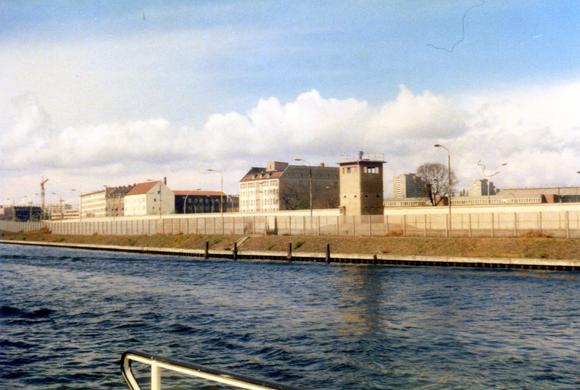 "Boat trip through Berlin on the Spree River on 11 April 1990, still with the Wall from 13 August 1961."