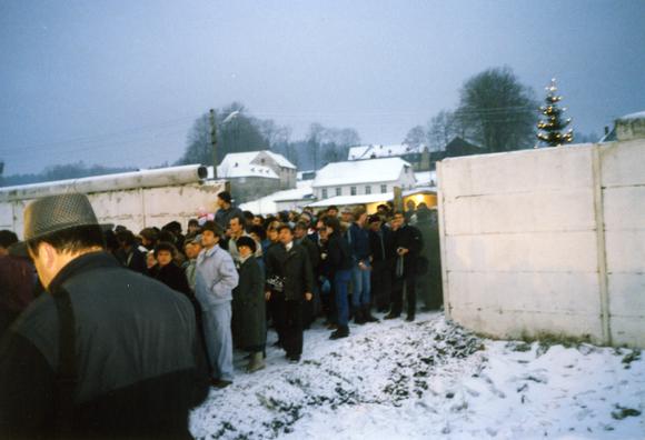 Menschenmenge am gerade eröffneten Grenzübergang in Mödlareuth (