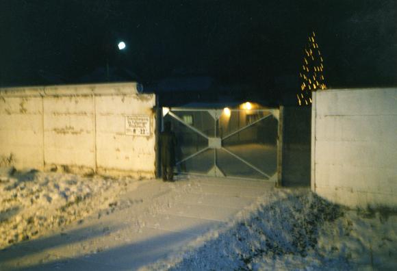 "Mödlareuth border crossing - in the early morning hours. The gate is still closed but the lights on the Christmas trees are already leaning towards the West."