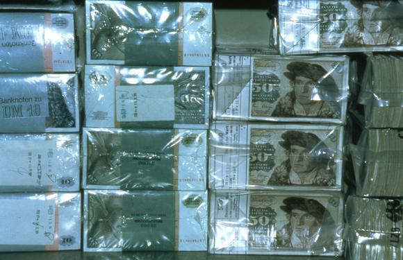 "Stapelweise Begrüßungsgeld: In der Stadt Hof alleine werden Millionen von DM an Begrüßungsgeld ausbezahlt. Jeder DDR-Bürger erhält beim ersten Besuch DM 100. Der Freistaat Bayern zahlt beim zweiten Besuch noch einmal DM 40 für jeden."
