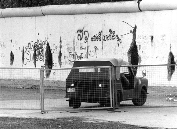 Trabant-Kübelwagen an der durchlöcherten Mauer