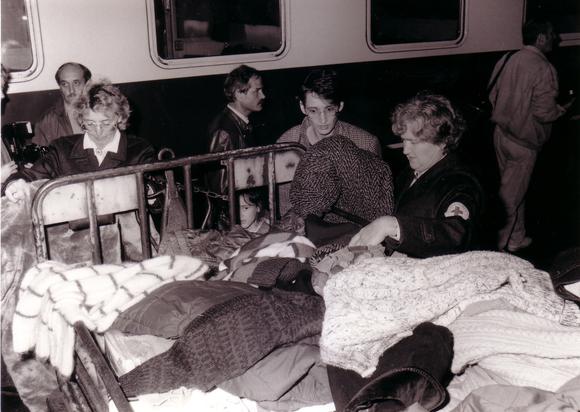 "Am Hofer Hauptbahnhof angekommen wurden die DDR-Bürger vom Roten Kreuz mit Kleidung versorgt."