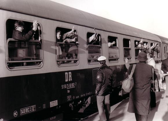Mit Sonderzügen der Deutschen Reichsbahn trafen im Oktober 1989 tausende DDR-Flüchtlinge in Hof ein. Sie waren z.T. seit August in die Deutsche Botschaft in Prag geflüchtet, bis ihnen am 30. September die Ausreiseerlaubnis erteilt wurde.