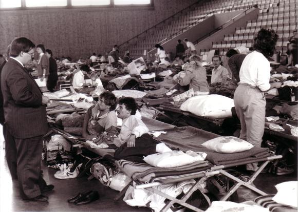 "DDR-Flüchtlinge in der Freiheitshalle in Hof"