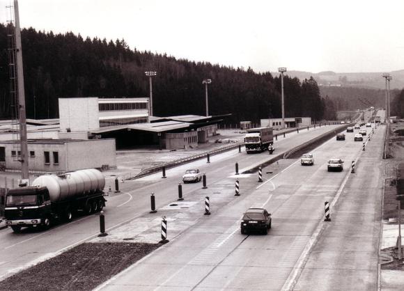 Am Autobahn-Grenzübergang Rudolphstein/Hirschberg auf der A 9, der am 9. November 1989 geöffnet wurde